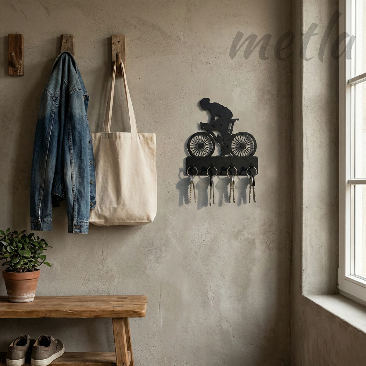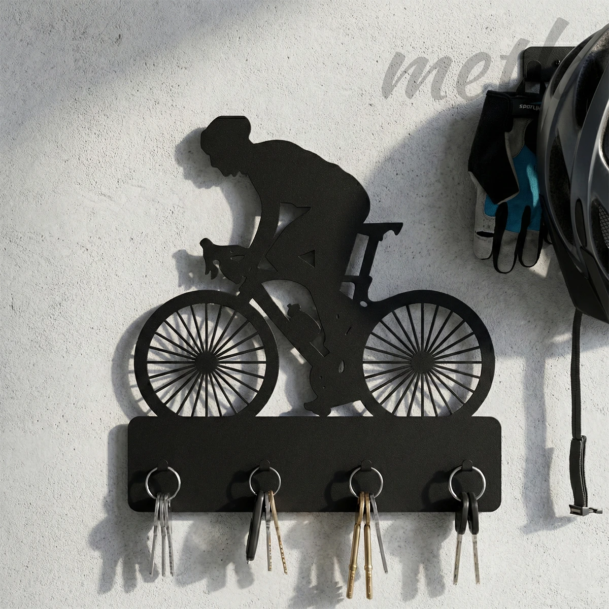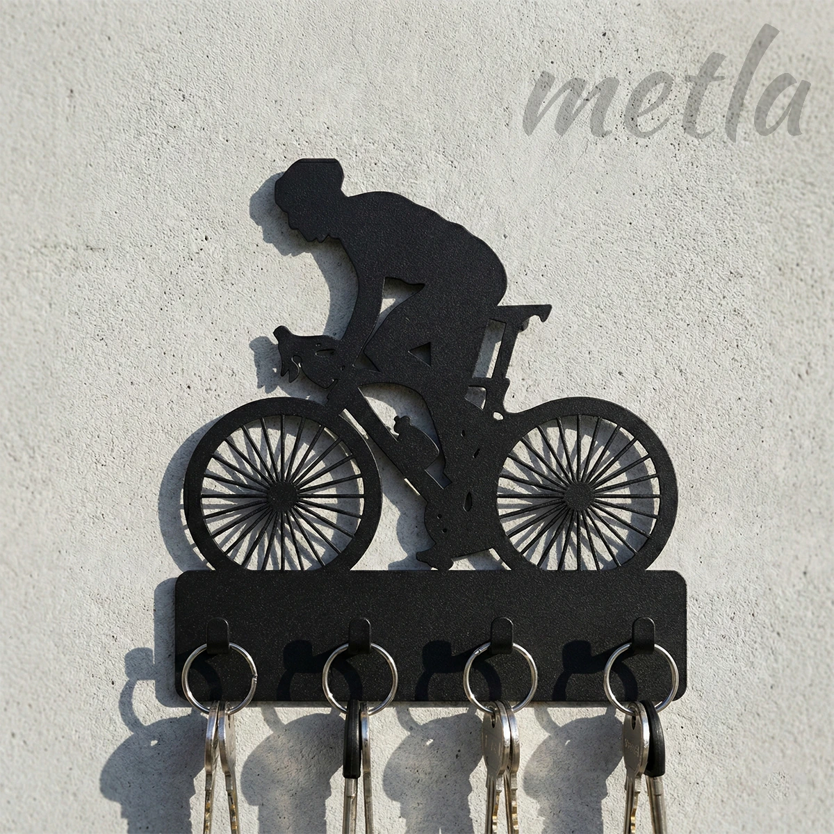 Metla Bisikletçi Silüet Metal Duvar Anahtarlığı: Fonksiyonel Sanat ve Endüstriyel Düzen