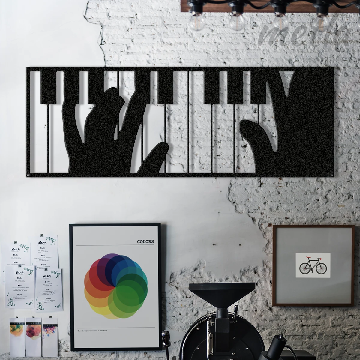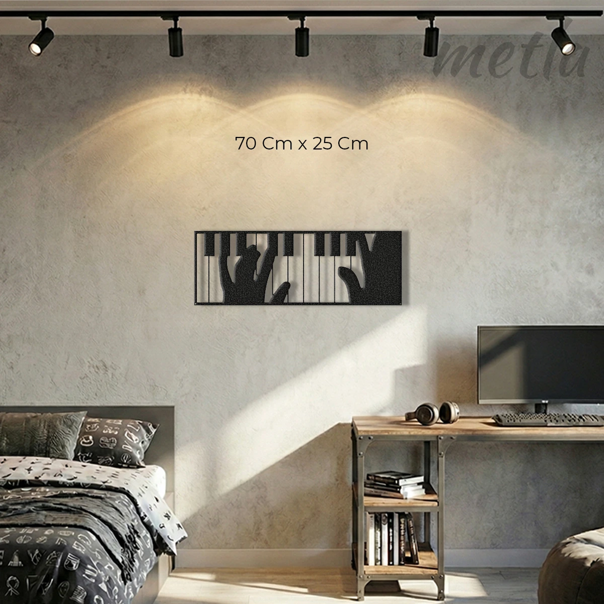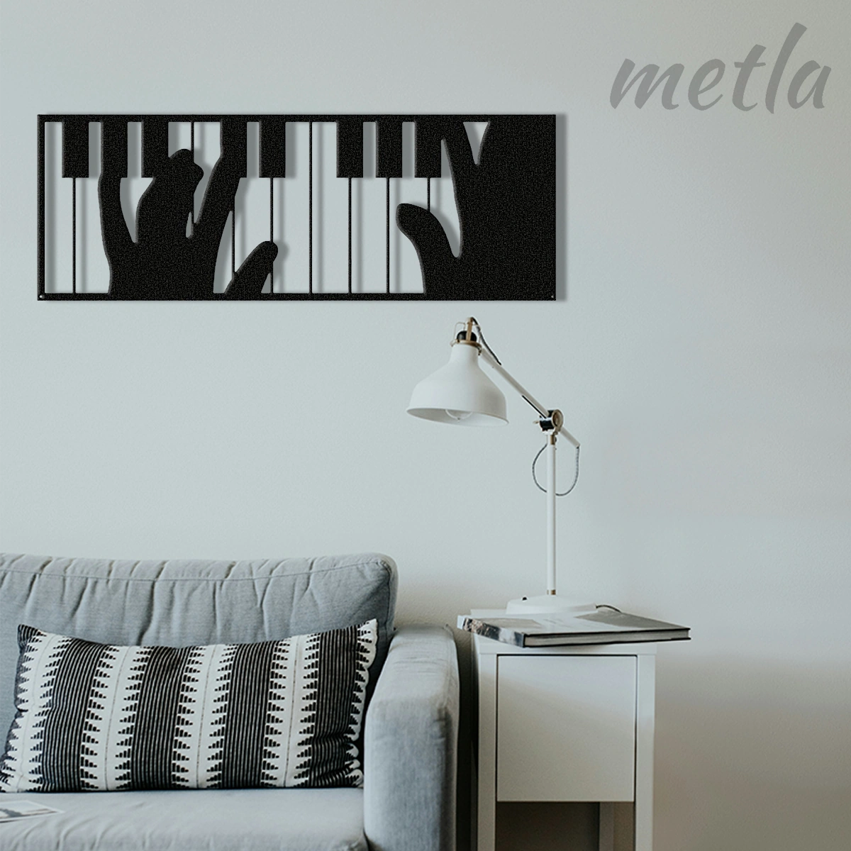 Müziğin akışını endüstriyel tasarımla duvarınıza taşıyın. Metla Piyano Çalan Eller müzik duvar dekoru, 2.0 mm yüksek mukavemetli çelikten üretilen detaylı silueti ve duvardan 1.5 cm önde duran 3D yapısıyla mekanınıza sanatsal bir derinlik katar. Modern stüdyolardan minimalist salonlara kadar her mekanda müzik tutkusunu yansıtan, karakter sahibi bir metal duvar dekoru.