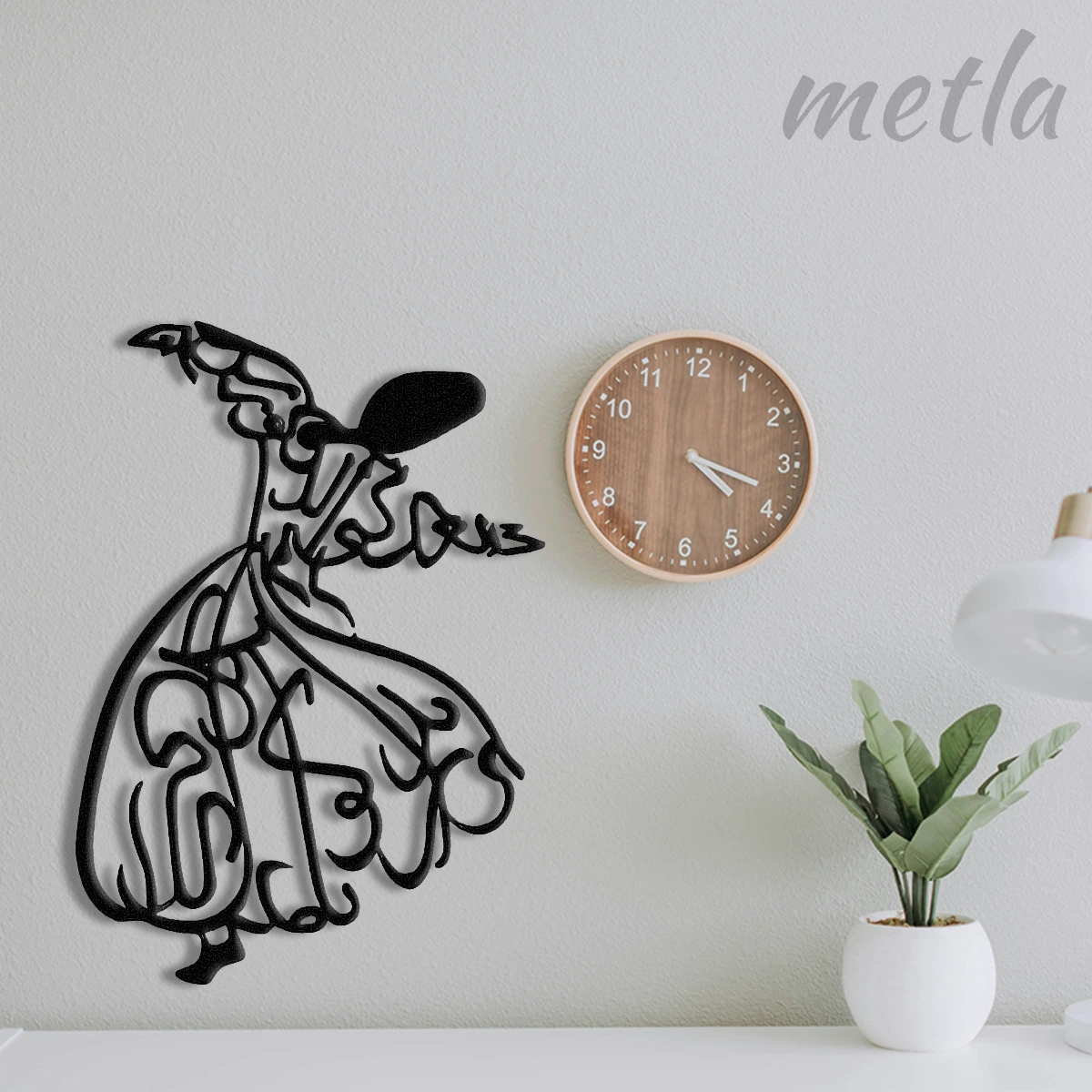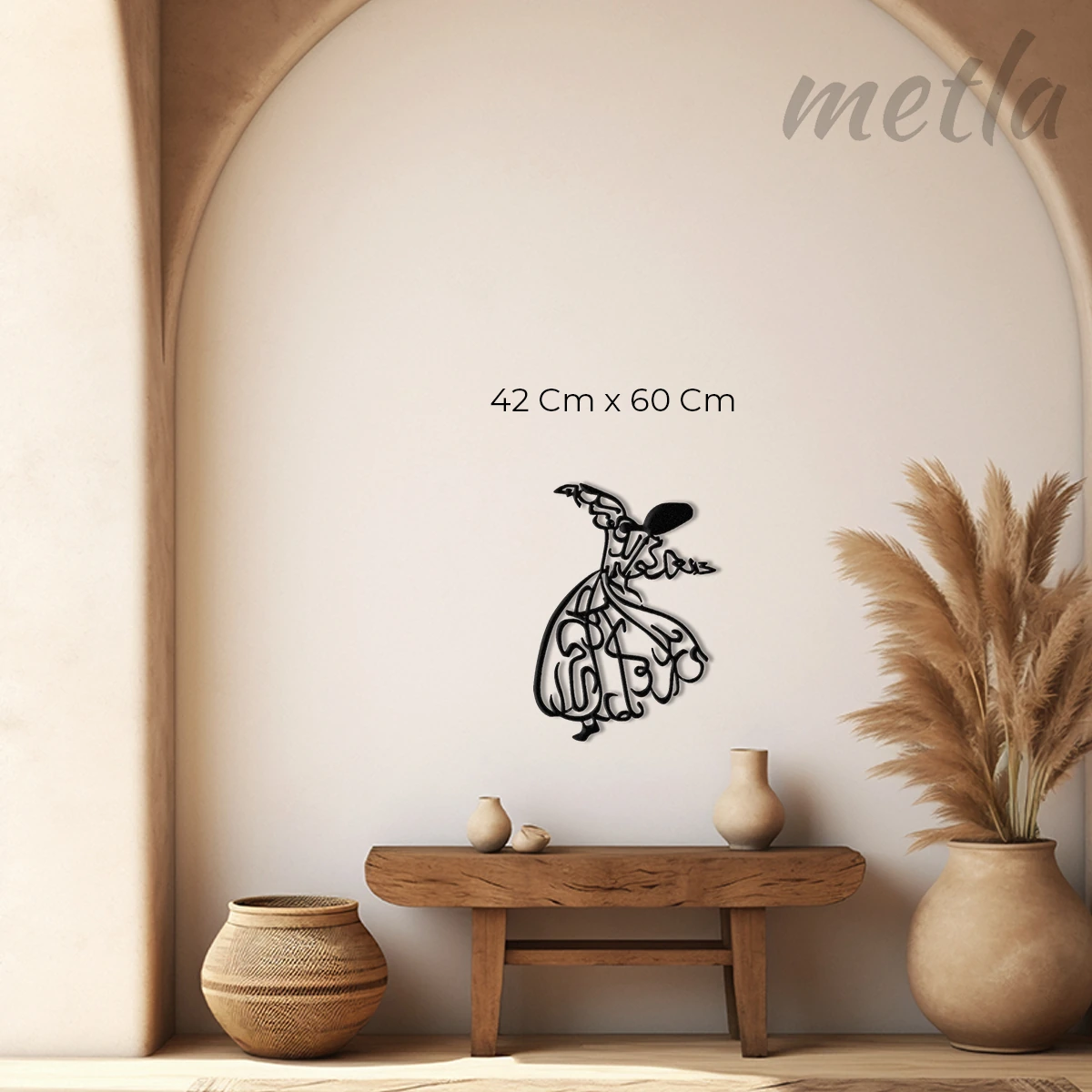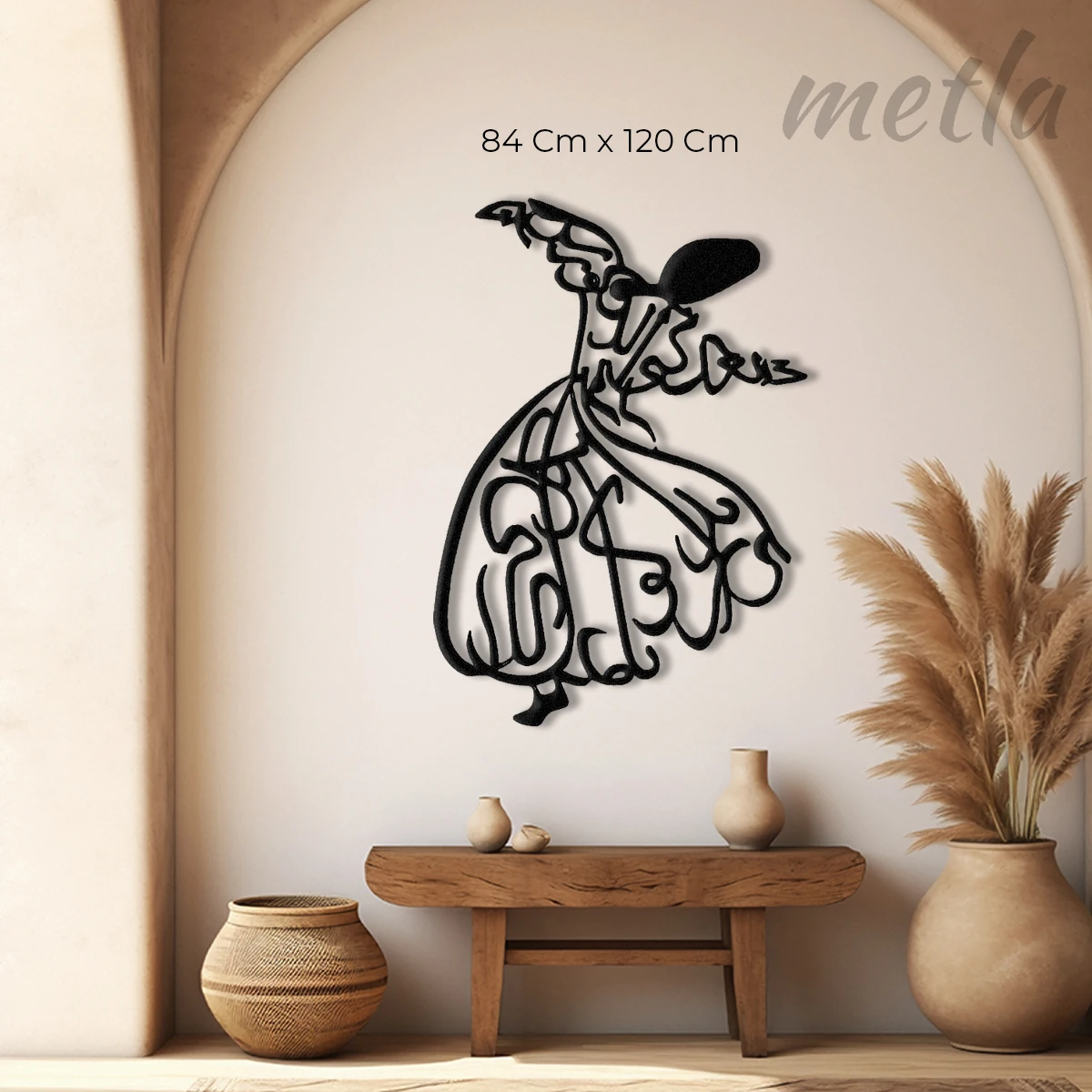 Ruhun yükselişini endüstriyel tasarımla duvarınıza taşıyın. Metla Semazen Metal Tablo, 2.0 mm yüksek mukavemetli çelikten üretilen zarif silüeti ve duvardan 1.5 cm önde duran 3D yapısıyla mekanınıza manevi bir derinlik katar. Modern, minimalist ve karakter sahibi yaşam alanları için tasarlanmış premium bir metal duvar dekoru.