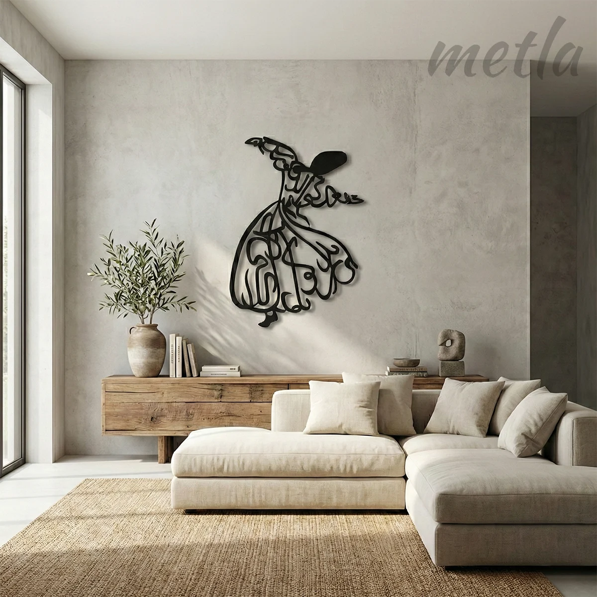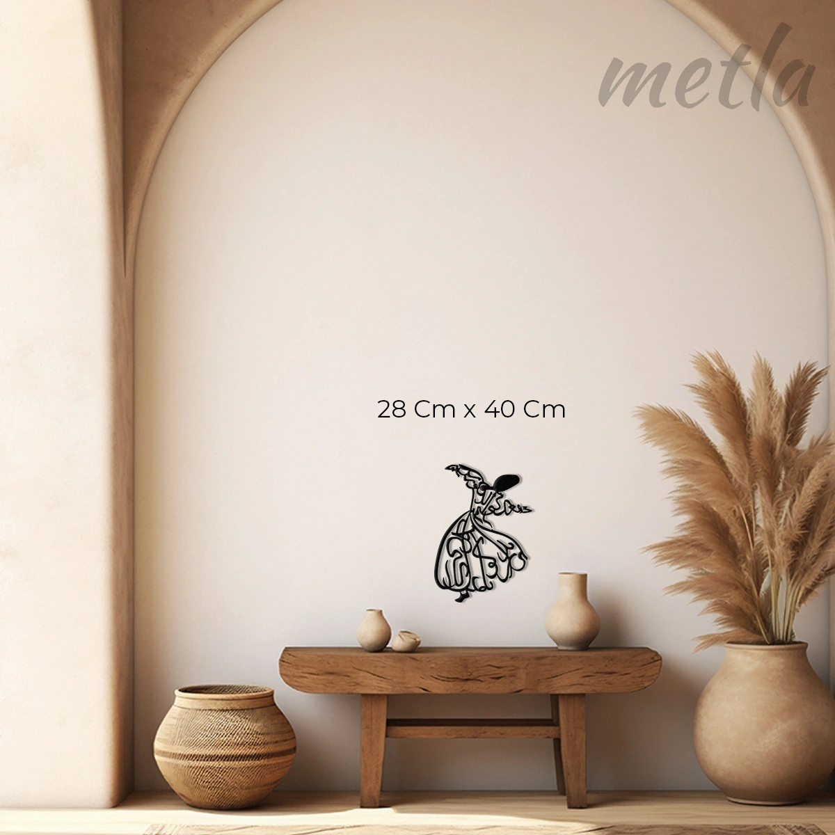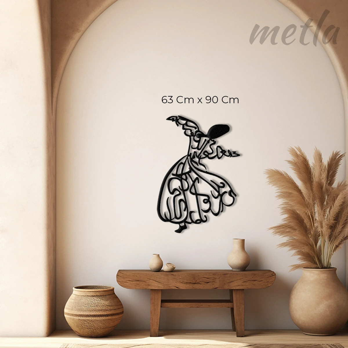 Ruhun yükselişini endüstriyel tasarımla duvarınıza taşıyın. Metla Semazen Metal Tablo, 2.0 mm yüksek mukavemetli çelikten üretilen zarif silüeti ve duvardan 1.5 cm önde duran 3D yapısıyla mekanınıza manevi bir derinlik katar. Modern, minimalist ve karakter sahibi yaşam alanları için tasarlanmış premium bir metal duvar dekoru.