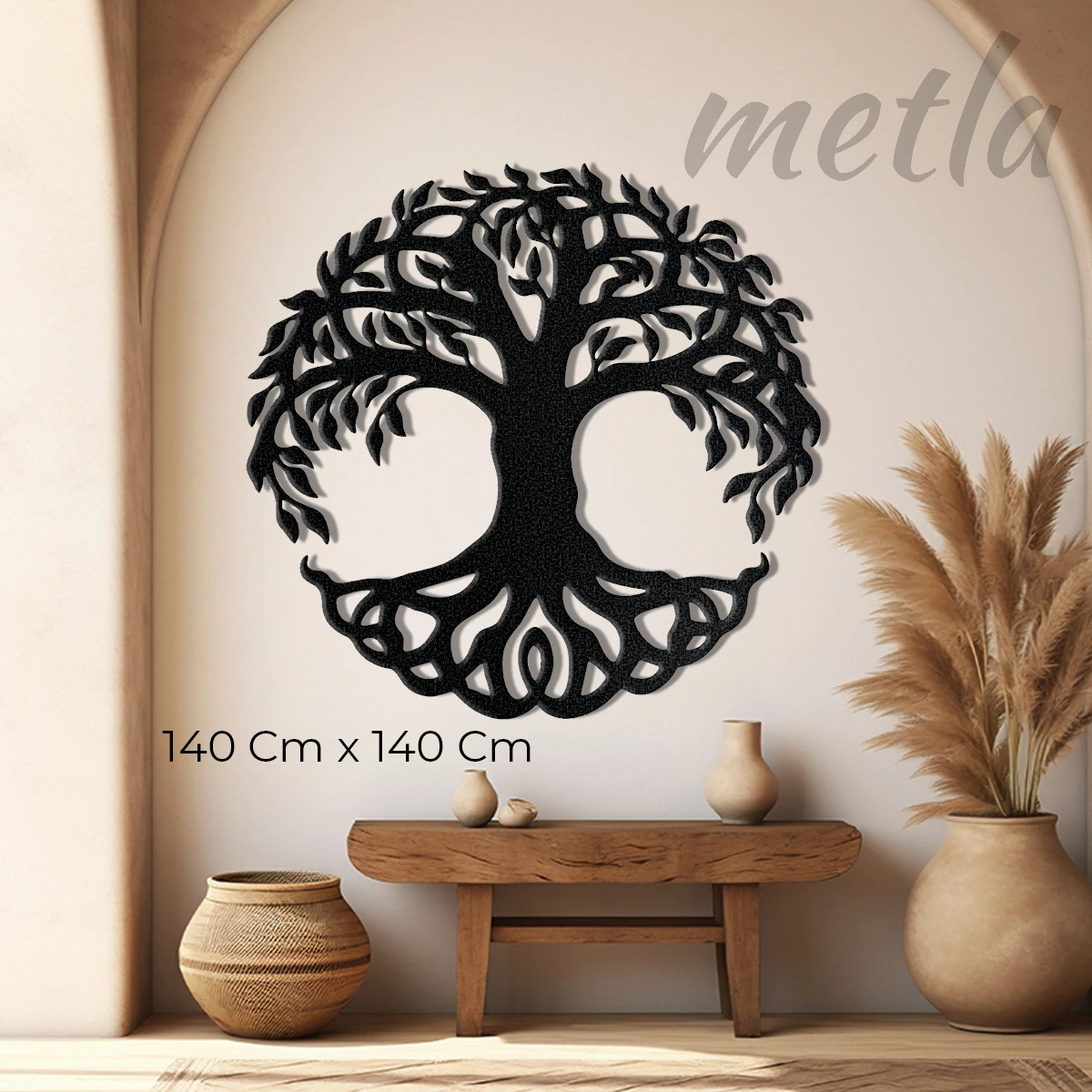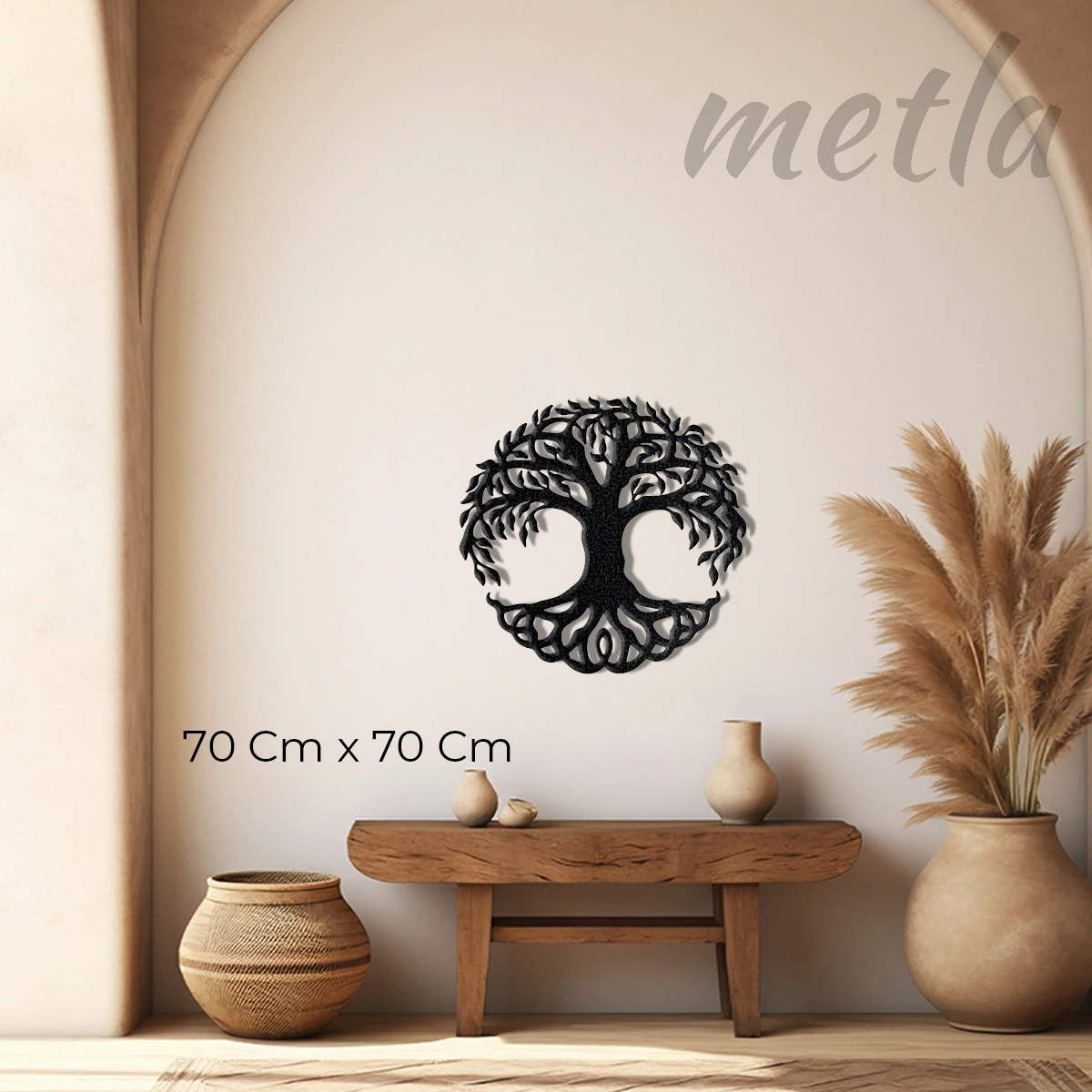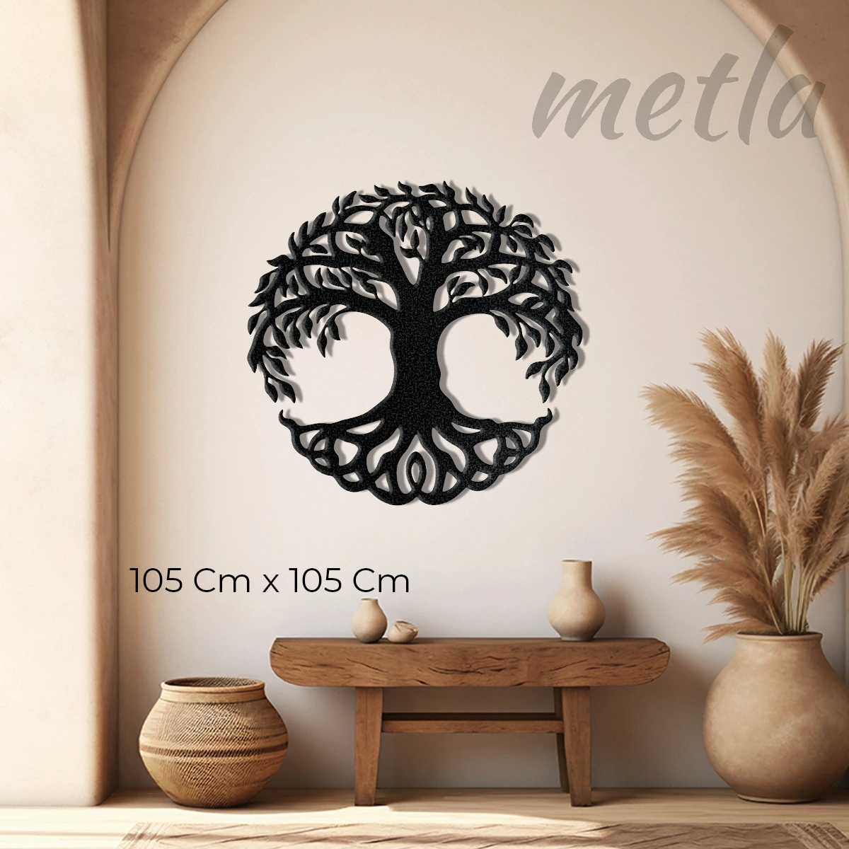 Yaşamın sonsuz döngüsünü ve dayanıklılığı çeliğin ham gücüyle keşfedin. Metla Yaşam Ağacı Metal Tablo, 2.0 mm yüksek mukavemetli çelikten üretilen dairesel formu ve duvardan 1.5 cm önde duran 3D yapısıyla mekanınıza sanatsal bir derinlik katar. Modern salonlardan minimalist ofislere kadar her alanda fark yaratan, karakter sahibi ve premium bir metal duvar dekoru.